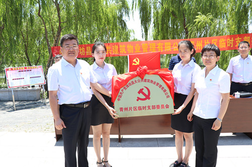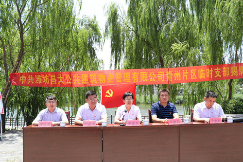 2018年6月28日上午,青州市臨時黨支部舉行揭牌儀式。青州市陽河管理局局長李愛美同志及其黨組織成員,公管公司總經理郇慶國、書記于宏勝等領導班子成員,臨時黨支部全體黨員和青州片區業務骨干參加了活動。