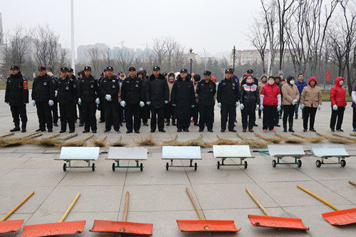 為有效應對冬季雨雪結冰等極端天氣,提升雪情搶險應急能力,12月6日,濰坊市文化藝術中心協力公管公司在中心南廣場開展了掃雪除冰應急演練。藝術中心項目管理處、各項目配電室監控室人員、保安保潔員及相關部室負責人共215人參加了此次演練活動。