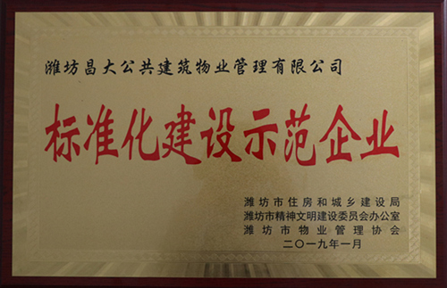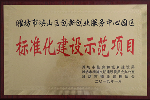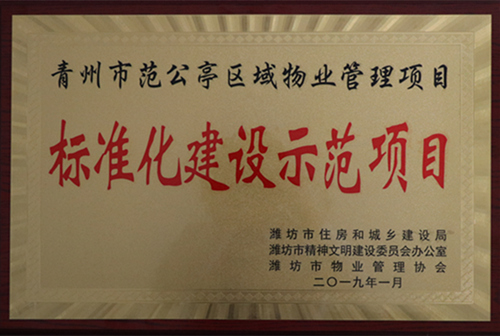 公司被市住建局授予“十佳物業企業”稱號;被市住建局、市文明辦、市物業管理協會聯合評為“標準化建設示范企業”。其中,濰坊市峽山區創新創業服務中心園區和青州市范公亭區域物業管理項目被評為“標準化建設示范項目”。
