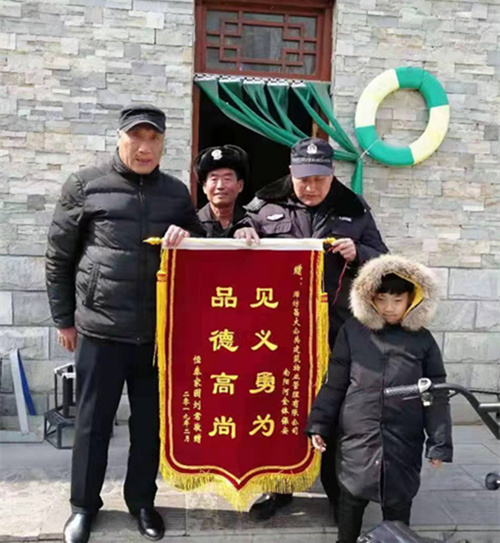 3月13日,青州片區管理處收到恒泰家園劉君送來一面寫有“見義勇為、品德高尚”的錦旗,感謝南陽河夜班保安不顧個人安危,及時將不慎落水的兒子救起。