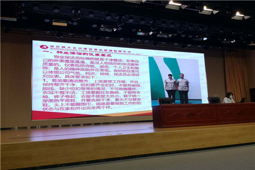 此次培訓由品質監察部及峽山片區負責人、全體保潔員參加。