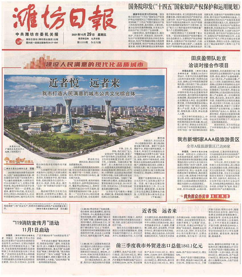 10月29日,濰坊日報對我公司服務管理的濰坊市文化藝術(shù)中心項目進行了頭版報道,現(xiàn)就我公司服務管理的大型公共建筑項目做如下介紹: